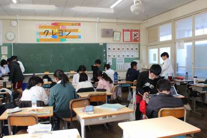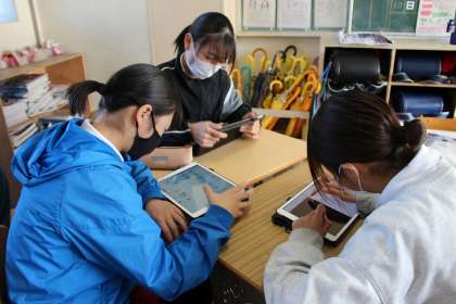 学習発表会に向けて、学習用タブレットを使ってグループで原稿づくりをしました。