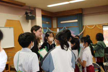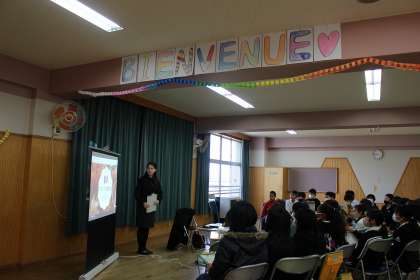 国際交流会では、フランスのアンジーさんを講師に迎え、食文化についてお話していただきました。日本との違いや共通点について知ることができました。