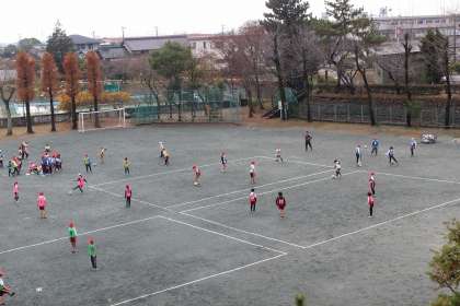 体育の時間には、グループに分かれてサッカーの練習をしました。