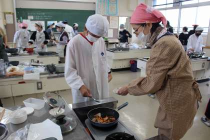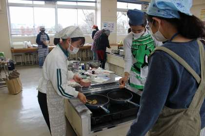 一人一実習の調理実習を行いました。ベーコンやハムと野菜を使った料理を作りました。