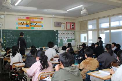 12月18日 6年生 公開日 2023/12/18 更新日 2023/12/18 各学年から 道徳に時間には、「おかげさま……。」の意味を考えることから、自分の日々の生活を見つめ、感謝の気持ちをもつことができました。外国語の時間には、ALTからのクリスマスクイズにグループで相談しながら答えました。