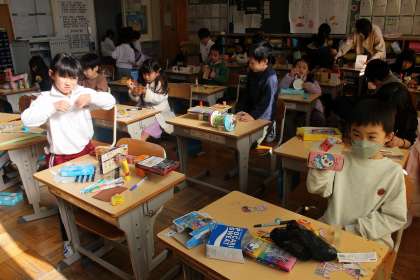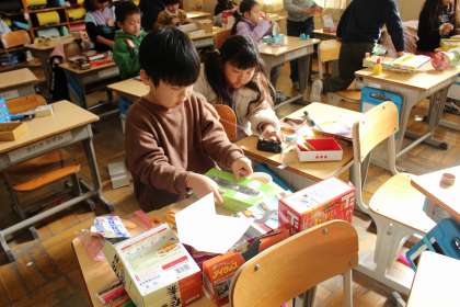 図工の時間には、いろいろな箱を使って思い思いの工作を作って楽しく活動しました。