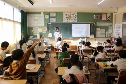 算数の時間には、「ものとひとのかず」の発展問題として、メッセージをもとに宝探しをする問題に挑戦しました。