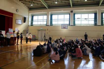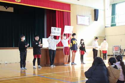 12月22日 冬休み前集会 公開日 2023/12/22 更新日 2023/12/22 学校行事 冬休みの過ごし方について、企画委員会からのクイズや先生からのお話を聞きました。家族との時間を大切にして、また1月9日から元気に登校してくれることを楽しみにしています。
