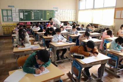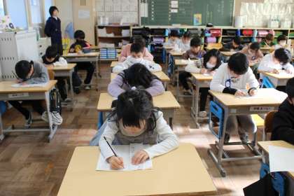 3,4時間目に書き初め大会を行いました。12月からの練習の成果を発揮して、丁寧に書き上げました。