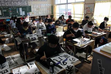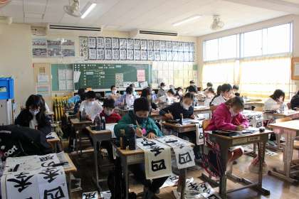 3,4時間目の書き初め大会では、時間いっぱい集中して書き、今までの練習の成果を発揮することができました。