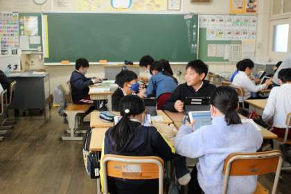 1月12日 5年生 公開日 2024/01/13 更新日 2024/01/13 各学年から 外国語の時間には、日本のお正月の話題についてリスニングをしました。総合では、テーマ別のグループで、米作りについて調べ学習を進めています。