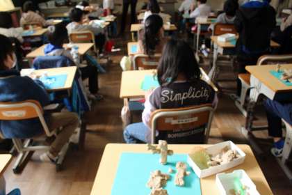 図工の時間には、冬休みの思い出を粘土で作って発表し合いました。