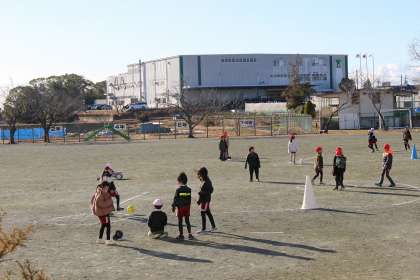 体育の時間には、チームで協力し合ってキックベースゲームをしたり、縄跳びに挑戦したりしました。