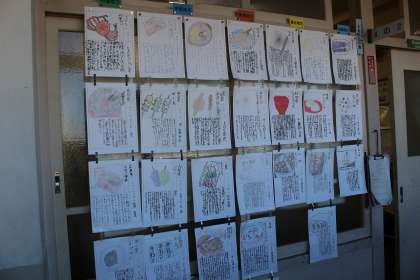 来週の学力テストに向けて、プリントで総復習をしました。国語の時間に作成した「ふるさとの食」の紹介文を掲示しました。