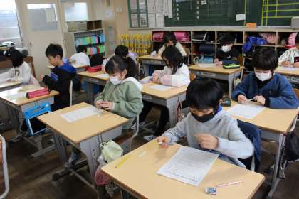 書写の時間には、お手本をよく見て一文字一文字丁寧に書く練習をしました。生活科では、自分の力でできるようになったこと、助けてもらってできるようになったことについて振り返りました。