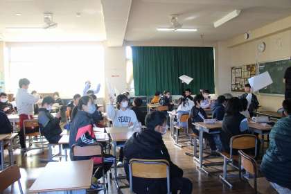 外国語の時間には、学力テストに向けて今まで習ったことをクイズを交えながら復習しました。