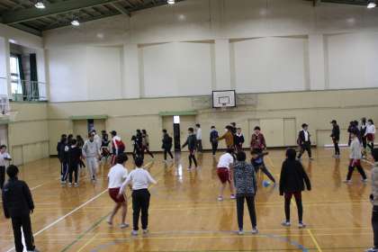 学年合同体育では、鬼ごっこやドッジボールをしました。