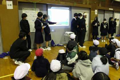 ブースごとに、環境問題や食品ロス、人口の減少などについて、クイズを交えながら発表してくれました。