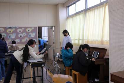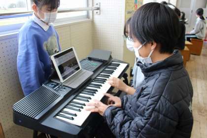 音楽の時間には、グループで好きな曲を選び合奏練習をしました。