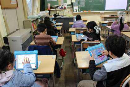 学習用タブレットを使って、プログラミングをしたり、ドリル学習をしたりしました。国語の時間には、新出漢字の練習をしたり、動物の子育てについて調べたことを発表し合ったりしました。