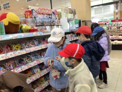 スーパーにお買い物学習に出かけました。代金を計算したり、レジで支払ったりすることができました。