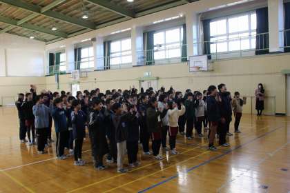 ひまわりテレビ「ボクらの学び舎」の撮影がありました。タイトルコールは6年生。企画委員が50周年キャラクターの紹介をしました。