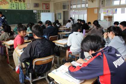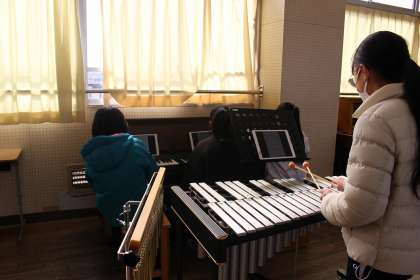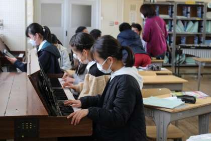 外国語の時間には、一番心に残った行事について、カードに英語で書きました。音楽の時間には、グループごとに合奏練習をしました。