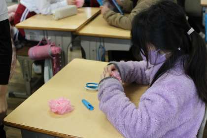 国語の時間には、アンケート調査のまとめを進めました。6年生を送る会に向けて、飾り作りを進めています。