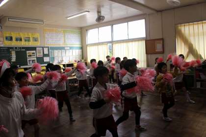 6年生を送る会に向けて、出し物のダンスの練習を進めています。ポンポンをもって元気いっぱい踊ります。