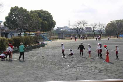 体育の時間には、縄跳びの練習やキックベースをしました。外国語活動では、キーワードゲームをしながら、十二支の言い方を練習しました。