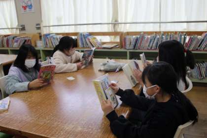 国語の時間には、物語「世界一美しいぼくの村」を読んだり、図書館で読書をしたりしました。