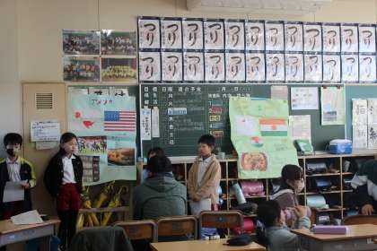 学級、学年での発表会に向けて、「外国についての紹介」の練習をしました。社会の時間には、消防団の役割について動画を見ながら復習しました。