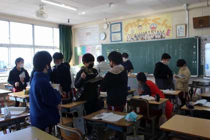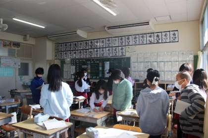 国語の時間には、5年生での自分の成長を振り返り、友達同士で伝え合いました。外国語の時間には、日常生活の日課について、英語で答えました。