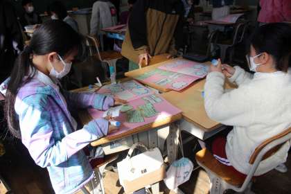 ファミリー班の6年生に向けたメッセージカードづくりを進めています。