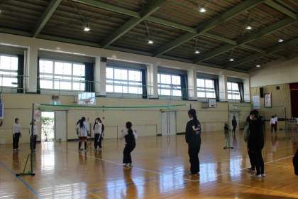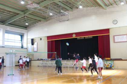 体育の時間には、バレーボールをしました。チームでボールをつなぎました。