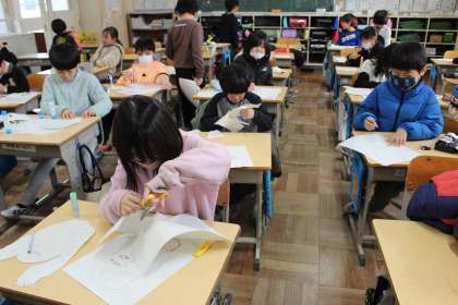 3月4日 2年生 公開日 2024/03/04 更新日 2024/03/04 各学年から 図工の時間には、自画像の紙版画を制作しています。算数の時間には、箱の面や辺について学んだことをもとにグループで話し合いました。