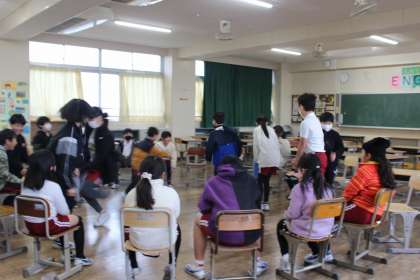 25班から36班のファミリー班遊びを行いました。お題ゲームや何でもバスケット、ころがしドッジボールなど、みんなで楽しみました。
