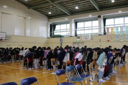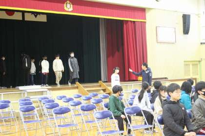 5年生は在校生の代表として、本年度卒業式に参加します。心構えや姿勢、呼びかけの練習をしました。6年生は、入退場の練習をしました。