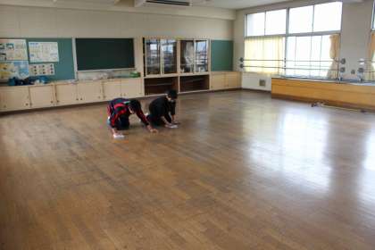 愛校作業として、特別教室の掃除やワックスがけ、体育倉庫の掃除や整頓を行いました。6年間の感謝の気持ちを込めて取り組むことができました。