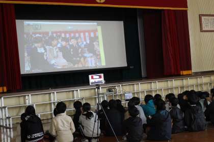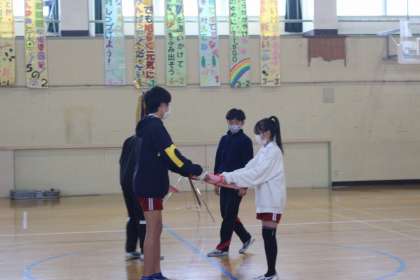 5年生は、思い出のアルバムをプレゼントしました。引継ぎ式では、在校生からのメセージカードを渡し、企画委員が誓いの言葉を述べ、6年生から励ましの言葉をもらいました。6年生への「ありがとう」「がんばってください」の気持ちを、形にして届けることができました。