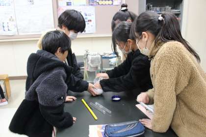 体育の時間には、ミニサッカーゲームをしました。理科の時間には、温度の変化と水の様子について実験しました。