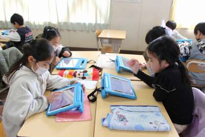 4コースに分かれて学区探検に出かけました。教えていただいたことをタブレットを使ってまとめました。