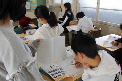 算数の時間には、復習問題に取り組みました。学年体育では、男女に分かれてドッジボールをしました。