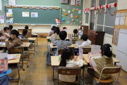 入学して2日目。通学団で登校した後、各クラスでロッカーの使い方や手洗い場、トイレの使い方などを一つずつ丁寧に教えてもらいました。