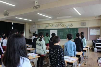 国語の時間には、5年生の漢字の復習をしました。音楽では、「おぼろ月夜」を歌いながらきれいな声を出す練習をしました。理科の学習の進め方や理科室の使い方、注意点を確認しました。