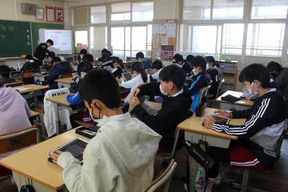 学活の時間には、係活動の掲示物づくりをしました。国語の時間には、アプリを使って新出漢字の練習をしたり、ワークシートの整理をしたりしました。