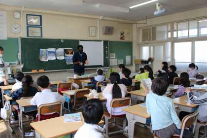 音楽の時間には、「小さな世界」を歌いました。外国語活動では、いろいろな国のあいさつを知り、自己紹介をしあいました。理科の時間には、天気と気温の変化をグラフに表しました。