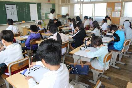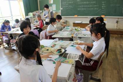 理科の時間には、天気と1日の気温の変化の関係を調べ、結果を発表し合いました。書写では、筆遣いを確認しながら、縦・横・曲がりなどの練習をしました。図工の時間には、スポンジやブラシなどの道具を使って、いろいろな塗り方を楽しみました。