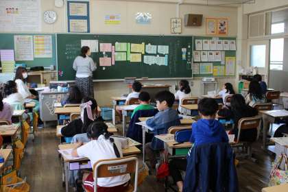 音楽の時間には、「BINGO」の曲に合わせて歌ったり踊ったりしました。書写では、書き順のきまりを見つけて丁寧に漢字を書きました。国語の時間には、音読発表会に向けて練習しました。