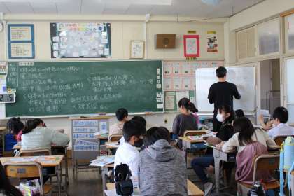 4月19日 5年生 公開日 2024/04/19 更新日 2024/04/19 各学年から 社会の時間には、日本の国土の特色について学習しました。家庭科の時間には、調理実習に向けて、包丁など調理道具の扱い方について学びました。
