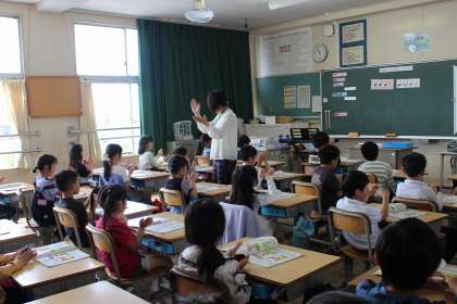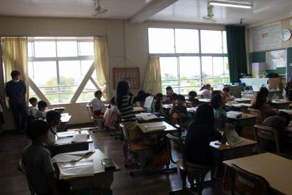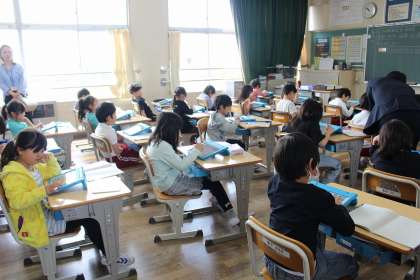 2年生は、1組タブレットを使った算数の授業、2組国語「風のゆうびんやさん」、3組音楽歌やリズム打ちの授業をしました。
