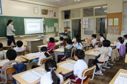 算数の時間には、6〜10までの数を学び、数字を書く練習をしました。生活科の時間には、「しりとり」や「あっちむいてほい」などの遊びを楽しみました。
