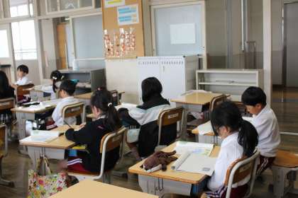 ファミリー班の1年生へのプレゼント、自己紹介カード作りをしました。