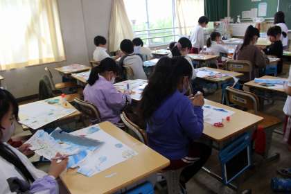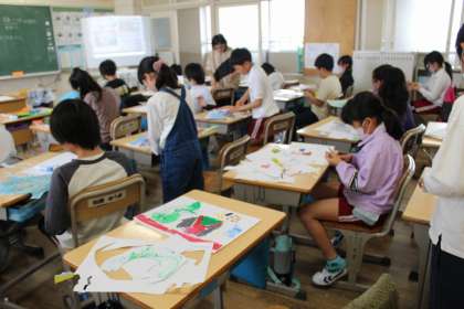 書写の時間には、みんな大好き「漢字BINGO」に挑戦しました。図工の時間には、絵の具で描いた様々な模様を組み合わせて、新しい絵を完成させました。